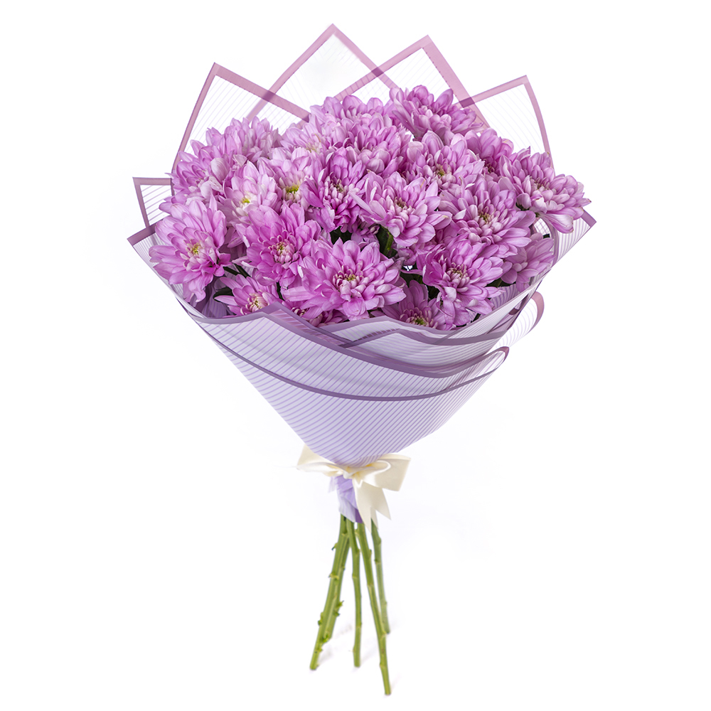 Букет из 5 фиолетовых хризантем в пленке