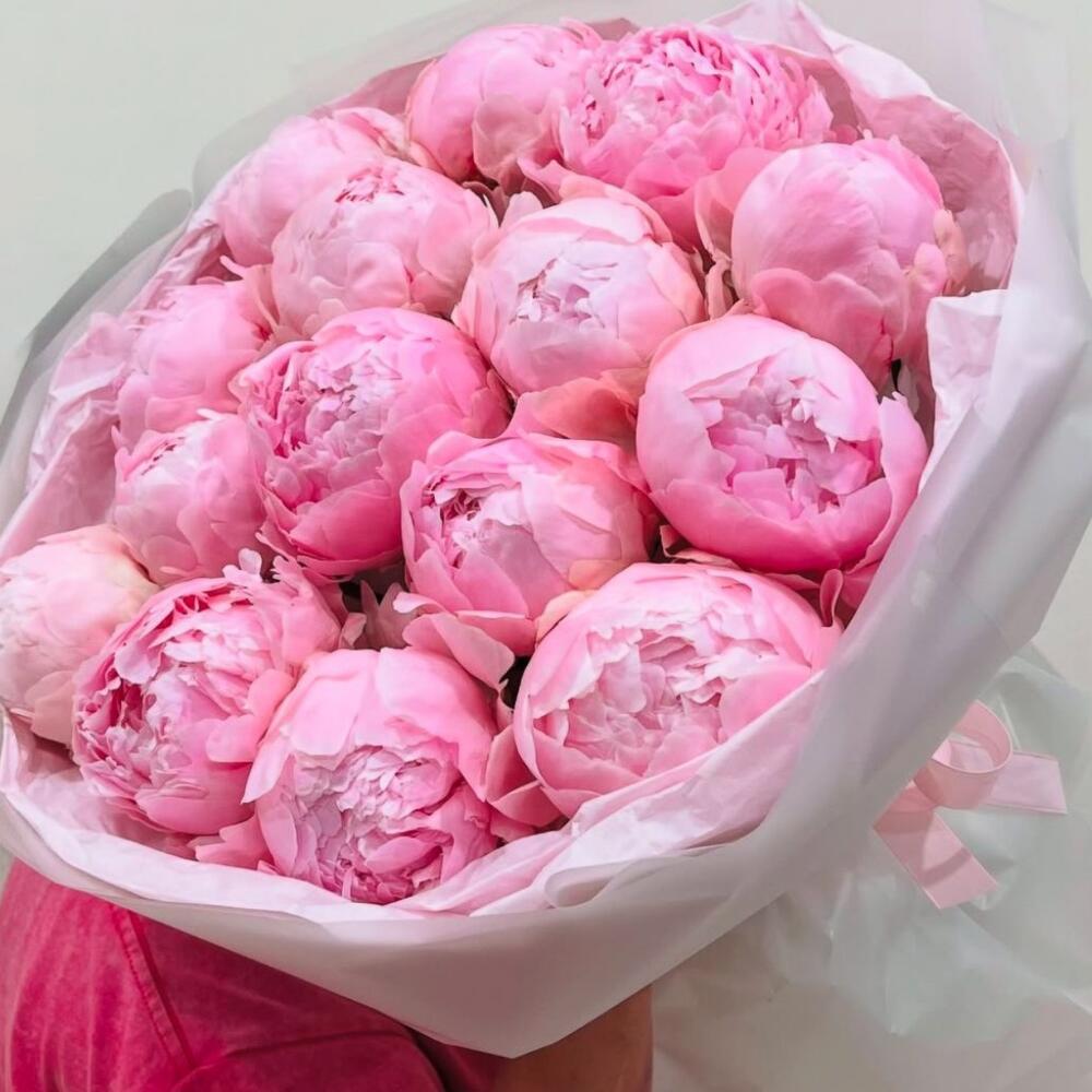 Букет из 17 нежно-розовых пионов