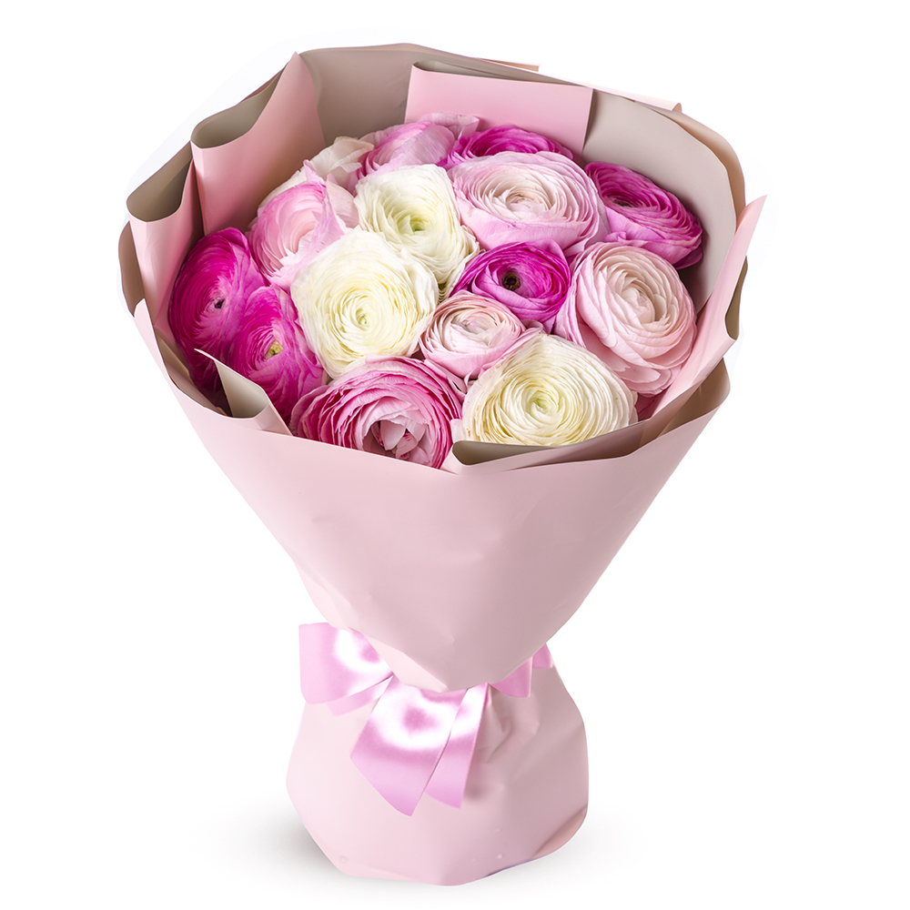 Букет из 15 разноцветных ранункулюсов