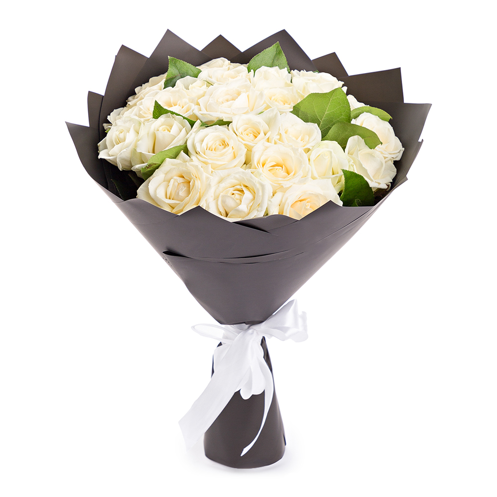 25 белых роз 50 см