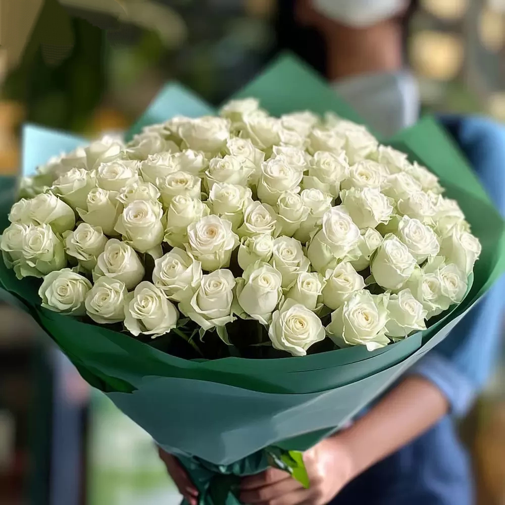 101 белая роза 40 см.