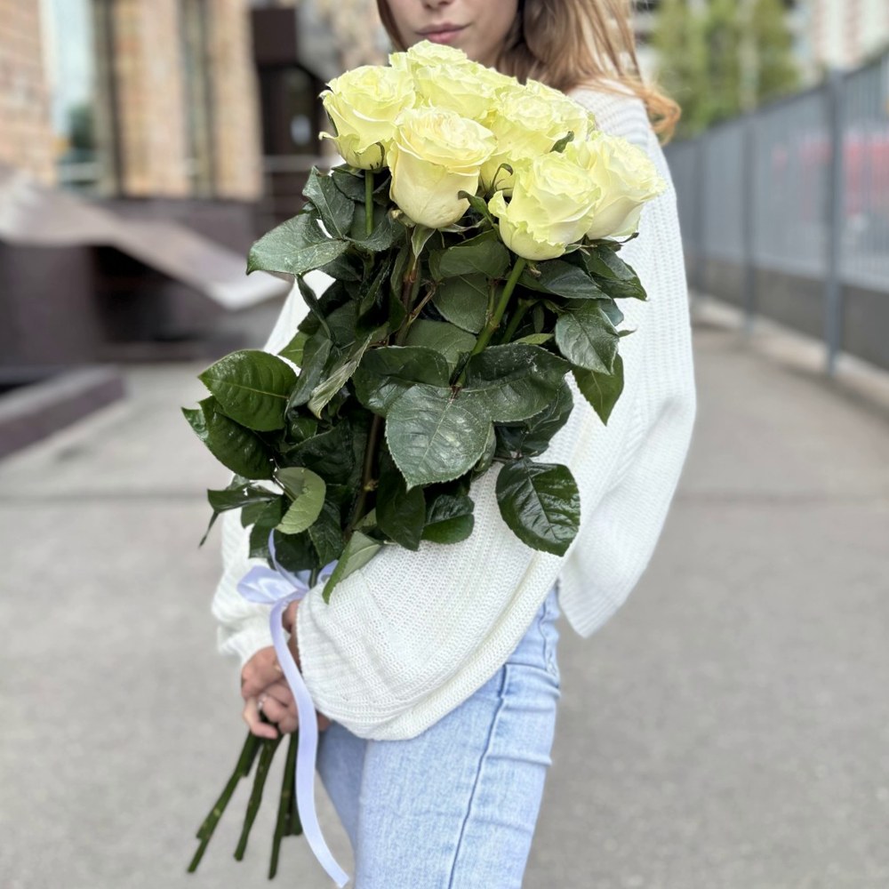 Букет из 9 белых роз Эквадор 70 см