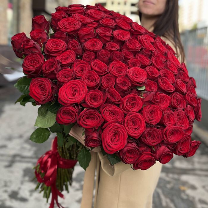 101 красная роза Premium 80 см.