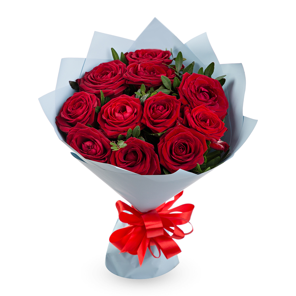 11 красных роз 50 см