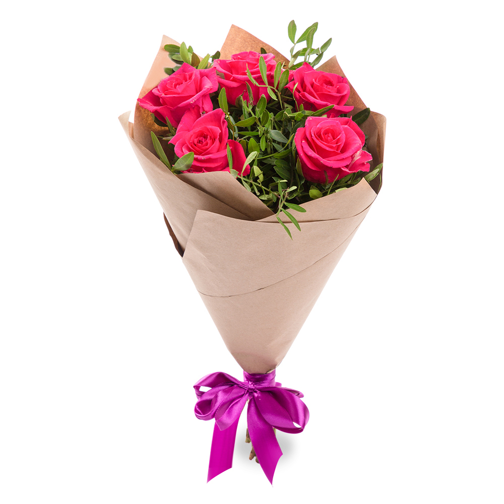 Букет из 5 малиновых роз 50 см