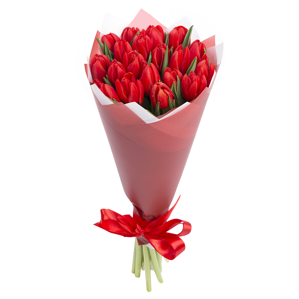 19 красных тюльпанов