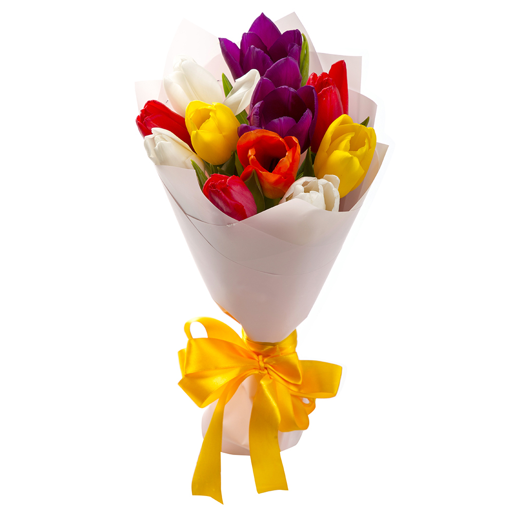 11 разноцветных тюльпанов