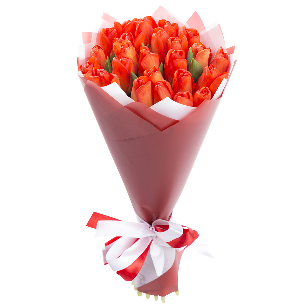 25 оранжевых тюльпанов