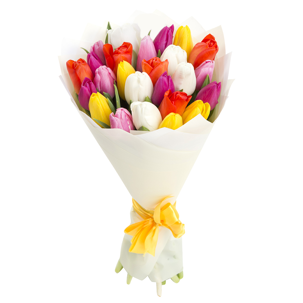 Букет цветов из 25 разноцветных тюльпанов